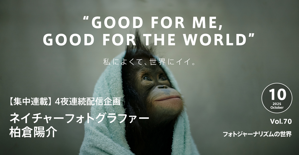 独自記事 【 2025/10/28 】 Art & Culture 【集中連載】ネイチャーフォトグラファー柏倉陽介(第1話) ※4夜連続... 自然に関わる分野を中心に幅広い題材を撮影し、数多くの世界的なコンテストに入賞してきたネイチャーフォトグラファーの柏倉陽介氏。