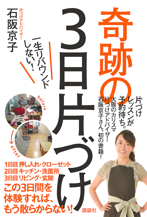 口コミで評判が評判を呼び、いまや片付けレッスンの予約待ちが1年というカリスマ片付けアドバイザー石阪京子さん。最近では「一生リバウンドしない! 奇跡の3日片づけ」(講談社)を出版され、こちらも話題になっています。