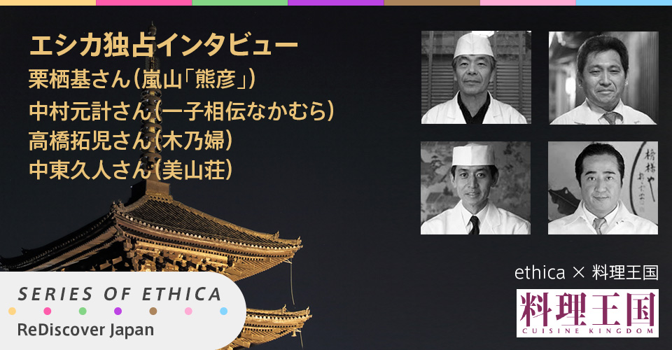 今回は、和食の賢人、栗栖基さん(嵐山「熊彦」)、中村元計さん(一子相伝なかむら)、高橋拓児さん(木乃婦)、中東久人さん(美山荘)の独占インタビュー映像を初公開致します。