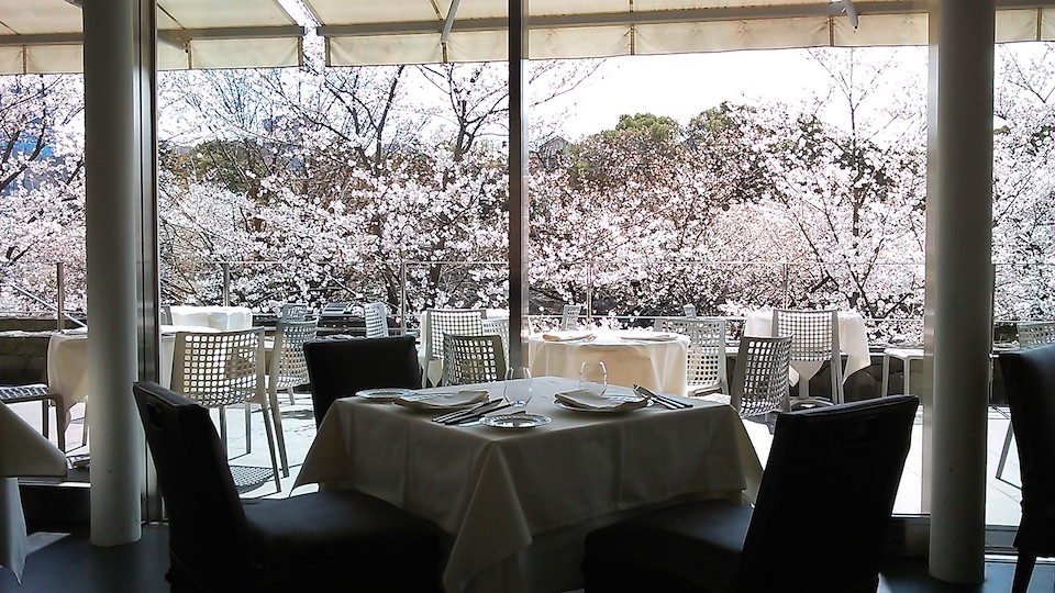 レストラン「ラー・エ・ミクニ」店内からみた桜