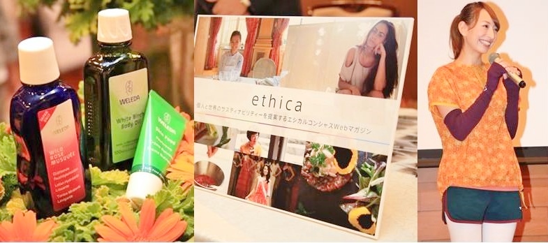 「ethica~私によくて、世界にイイ。~」のグランドオープンを記念して、メディア関係者を中心に2013年9月27日に国際文化会館(岩崎小彌太記念ホール)でプレスレセプションを開催。ファッションジャーナリストの生駒芳子さんや2013 ミス・ユニバース・ジャパン 松尾幸実さんの応援ビデオメッセージが紹介されたほか、ヴェレダやネイチャーズウェイのオーガニックコスメの展示もあり、ethicaの世界感を体験できるレセプションとなりました。