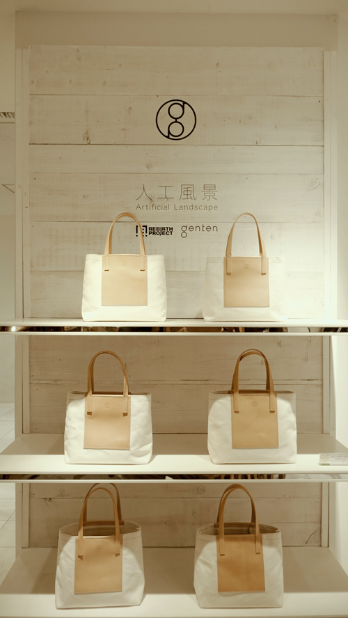 そのREBIRTH PROJECTと「環境に配慮し、限りある資源を大切にしながら、長く愛着の持てるモノづくりを目指す」という理念をステートメントとして掲げるこだわりのレザーとハンドクラフトの技が光るバッグブランド「genten(株式会社クイーポ)」がコラボレーションしたバッグが、三越伊勢丹で開催中の「グローバルグリーンキャンペーン」内で販売されています。売り場は17日(火)までが伊勢丹新宿店、18日〜24日までが三越日本橋店での展開です。
