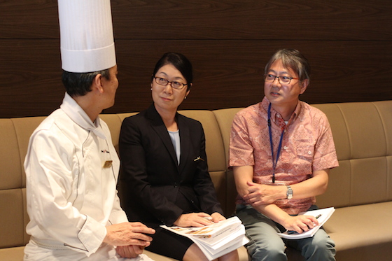 (左)シェフズ ライブ キッチン 佃料理長 (中)インターコンチネンタルホテル東京ベイ 営業企画・支配人の奥園恵美子