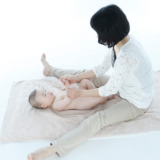 「ベビーマッサージ」は赤ちゃんの足裏や全身をマッサージするというもので、ママが赤ちゃんに愛情を伝えるスキンシップの一つ。そうすることによって、赤ちゃんの心が安らぎ、ママに愛されている幸福感に満たされて赤ちゃんの脳と体の成長が促されるばかりか、最近ではベビーマッサージをすると、ママのストレスも減ることが科学実験で立証されています。