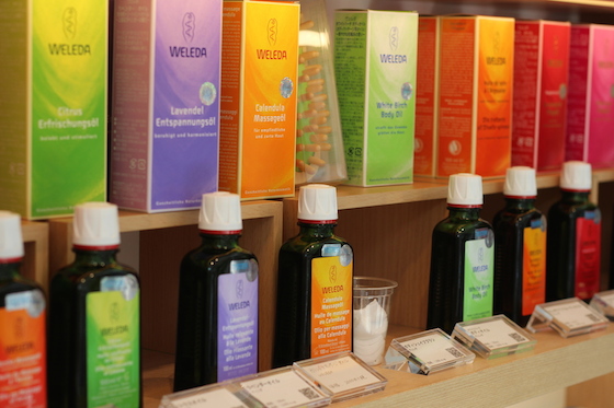 デザイナーはニューズウィーク誌の「世界が尊敬する日本人、百人」に選ばれた世界的なデザインオフィス「nendo」の佐藤オオキさん。お店に入ると腰の高さ辺りから天井近くまでちょうど図書館に本が並べられている様に真正面に木の棚がありそこに色々な商品が並べられています。