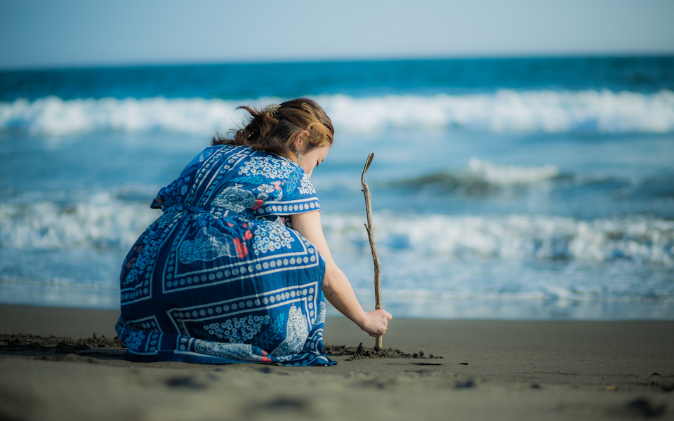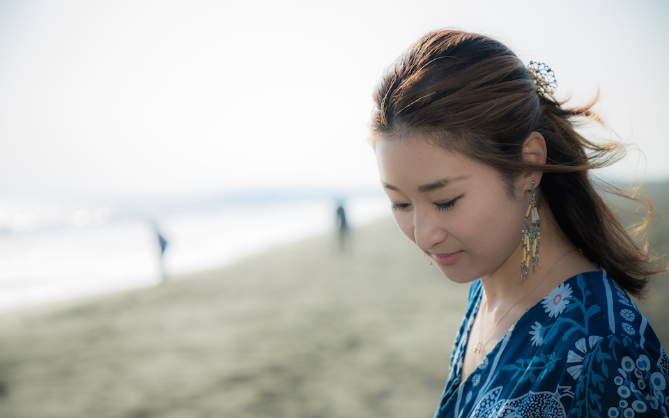 海岸で初めてお会いしたRIEさんは、波間のきらめきにも負けないほどキラキラと輝く笑顔が印象的。しかし、20歳前後のころに話が及ぶと、苦しかった当時を思い出し声を詰まらせました。人によって傷ついた心は、しかし、人との出会いによって癒され、再生していくーー。そんなRIEさんの経験は、今を生きる多くの女性たちに希望を与えてくれるはずです。