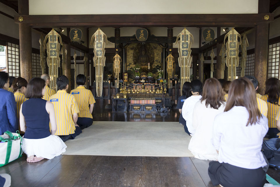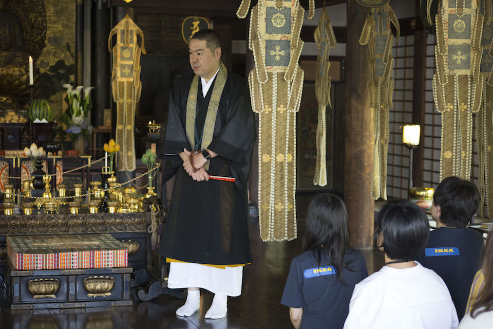 6月20日、京都の世界遺産・醍醐寺の境内で、黄色いユニフォームを着た人々が、竹箒や雑巾を手に、境内の清掃を行う姿がありました。参拝客は、ユニフォームの背中の「Ikea」の文字を見て不思議に思ったかもしれません。スウェーデン発祥ブランドであるイケアが、なぜこのような昔ながらの方法でお寺の清掃を? この日、イケア・ジャパンの従業員に向けて、サステナビリティに対する意識を育むために実施された新たな試み「醍醐寺1日修行体験」を取材しました。