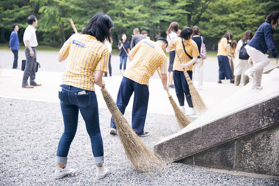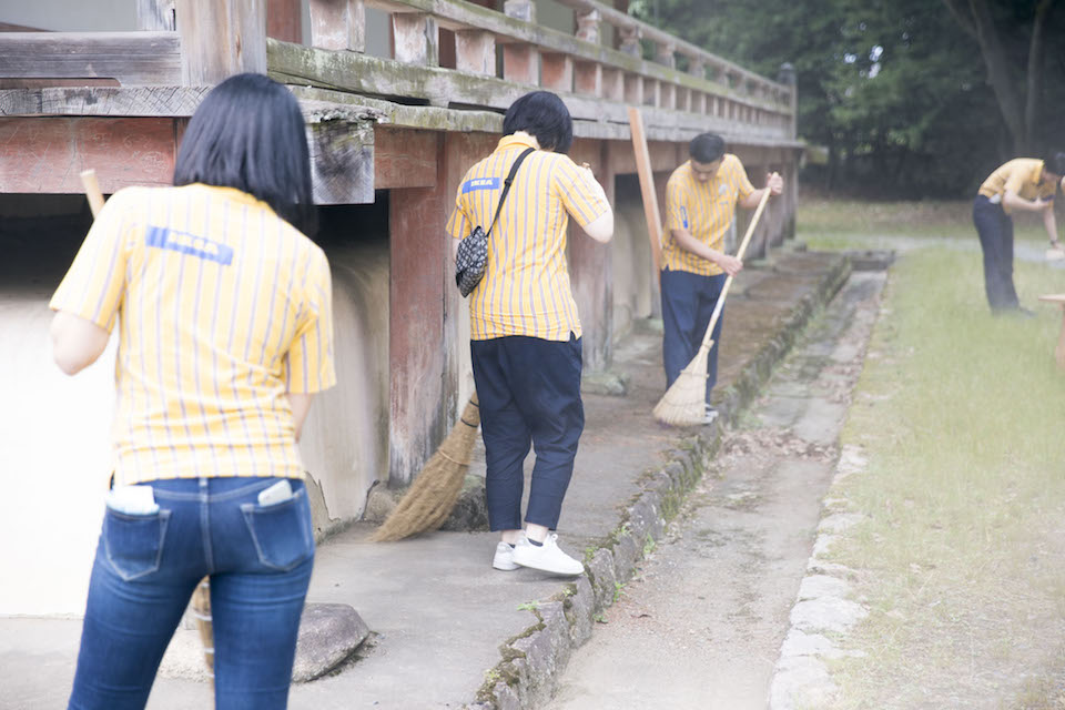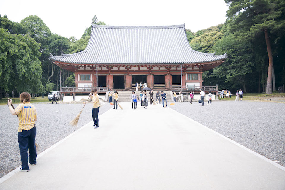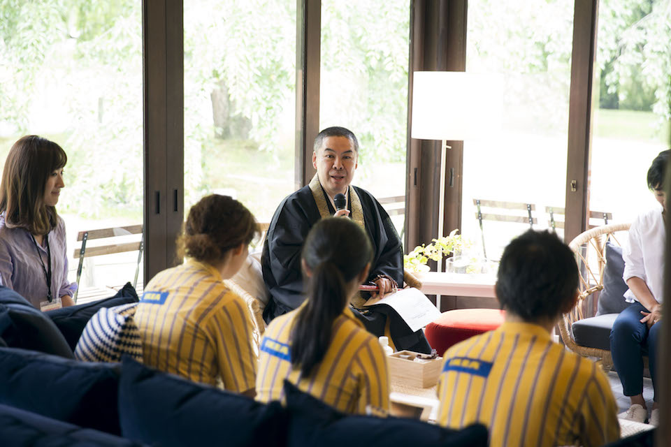 前編に続き、イケア・ジャパンが従業員向けに実施したワークショップ「醍醐寺1日修行体験」の模様をお伝えします。午前中、僧侶の方々の案内で醍醐寺の歴史に触れた参加者たちは、午後、境内を清掃し、イケアの家具でコーディネートした寺内のカフェで、僧侶とサステナビリティに関する意見交換会を行いました。世界最大規模のホームファニッシングカンパニーが、世界遺産の寺院での修行を通じて考えるサステナビリティ。最高気温30度を越えた初夏の一日、深緑の境内に黄と濃紺のユニフォームが点々とする風景は、とても象徴的でした。