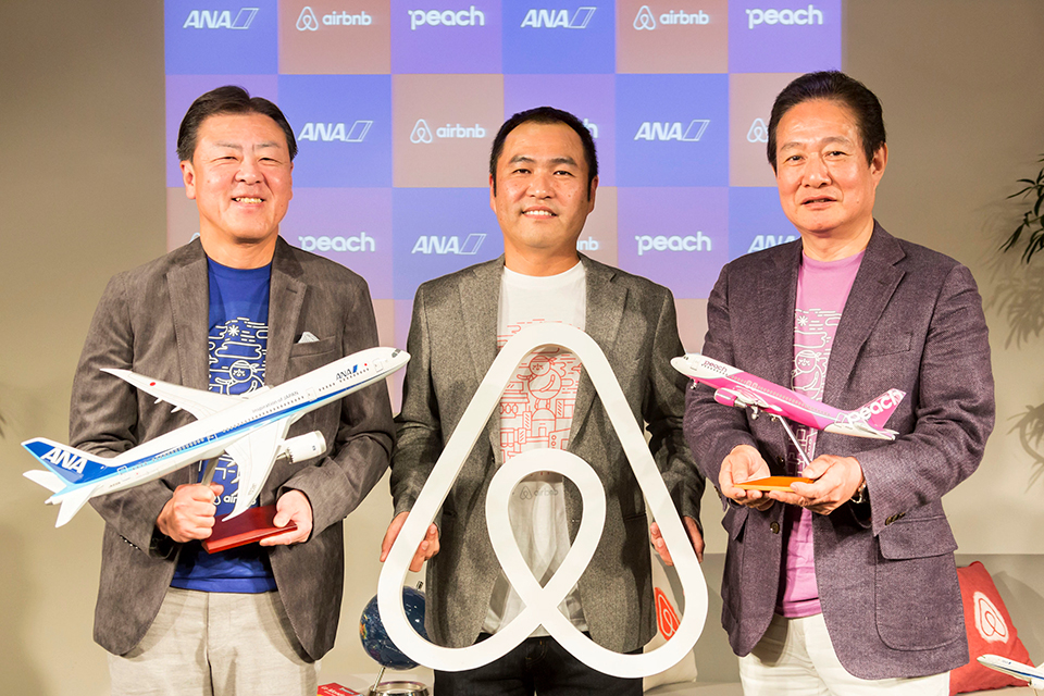 2017年11月6日、Airbnb Japan株式会社(本社:アメリカ カリフォルニア州サンフランシスコ、以下:Airbnb)と全日本空輸株式会社(本社:東京都港区、以下ANA)Peach Aviation株式会社(本社:大阪府泉南郡田尻町、以下:Peach)の3社は新しい旅行スタイルの普及と拡大におけるマーケティングについて、パートナーシップ契約を締結。Airbnbが日本のエアラインとのパートナーシップを締結するのは今回が初めてとなります。「日本の旅を変える、新しいスタイルを提案」とのコンセプトの下で各社が新しい国内旅行市場の開拓を目指していくようです。