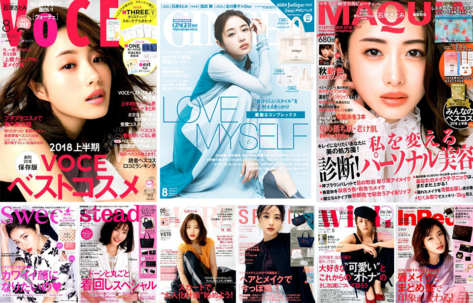 石原さんは、GINGER、MAQUIA、MOREなどの女性誌を中心に、表紙ばかりでなく、自身のメイクやファッションについていろいろ話しています。ドラマのメイクを自分でしたりもする、というのはちょっと驚きでした。