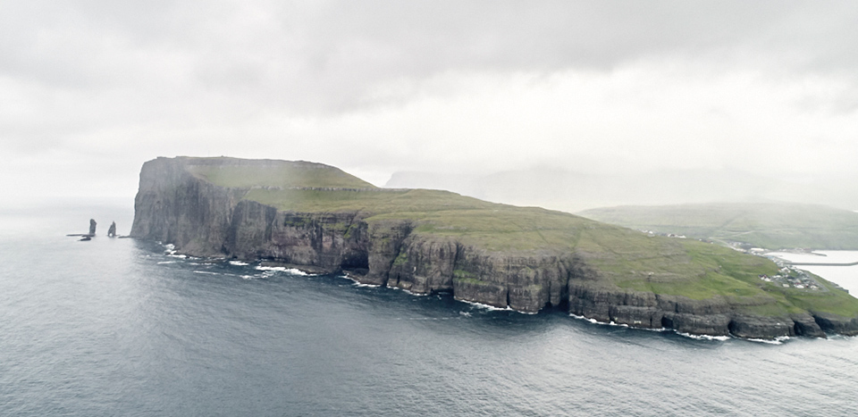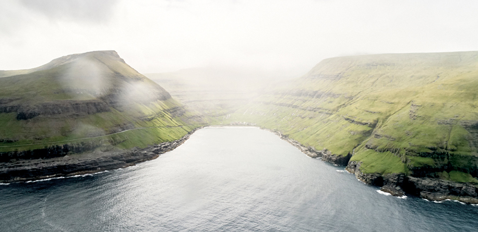成田から西に向かって12時間、コペンハーゲンで宿泊し、次の朝、飛行機を乗り継ぎ北へ向かって2時間。真っ白な雲を抜け、蒼く波立つ海に現れた小さな点々が、壮大な景観の島々へと広がっていきました。緑が覆う岩山の谷の間を大きな鳥が滑るように降り立つ、その島への着陸は、まるで想像の世界に飛び込んでいくかのような瞬間でした。