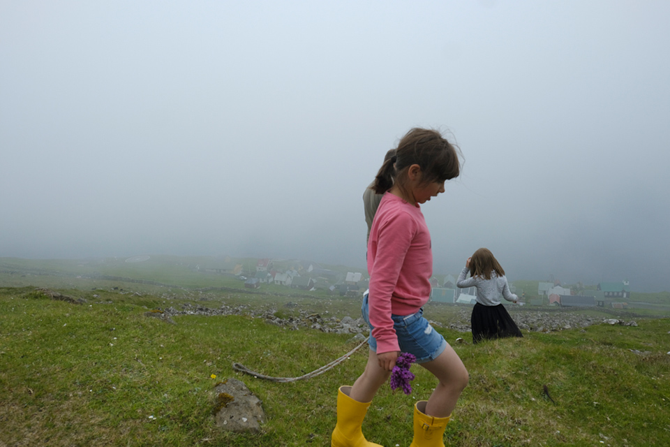 霧の横たわる麓に向かって一緒に歩きながら、島々の名前や地名の秘密、雲の姿、風景の様子の単語を持つ、豊かでユニークなフェロー語を教えてくれました。
