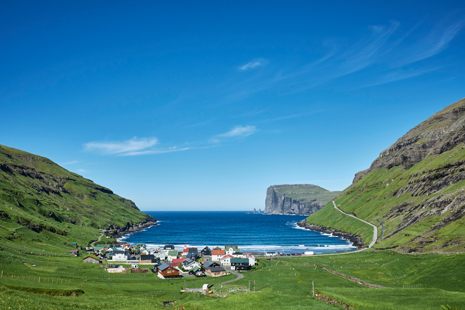 フェロー最北のヴィウォイ島(Viðoy)の北端、ヴィーダレイディ(Viðareiði)の村。