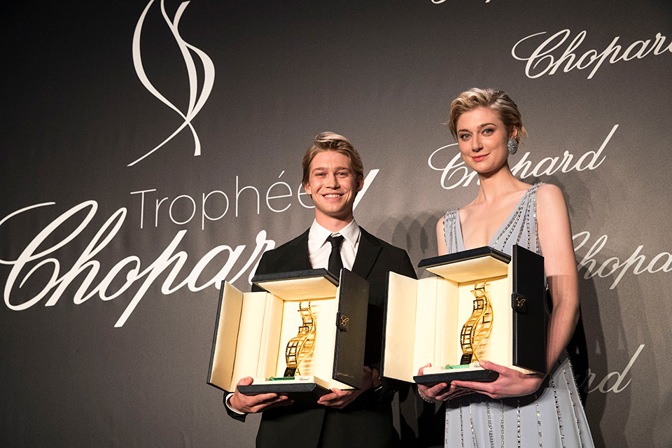 2018年にショパール・トロフィーを受賞した、ジョー・アルウィン/ Joe Alwyn (左)エリザベス・デビッキ/Elizabeth Debicki(右)〜写真提供:Chopard