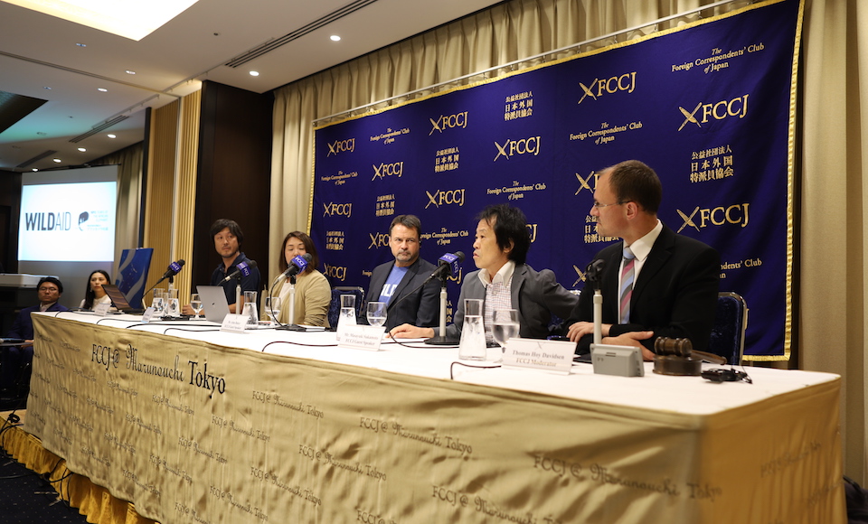 野生動物の違法取引防止を目的に活動している環境保全団体「WILDAID」と、アフリカゾウの密漁防止及び象牙の消費をなくすことを目指しているNPO法人「アフリカゾウの涙」は、日本の象牙市場閉鎖を後押しすることを目的としたキャンペーン「#私は象牙を選ばない」を日本で本格的に展開するにあたり、8月8日午後、丸の内の日本外国特派員協会でその発表会を開催しました。