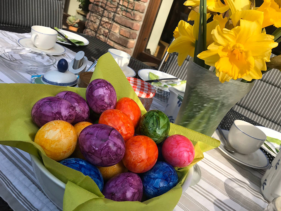 ドイツでは、地域によってイースターの過ごし方は違うみたいです。私のおばあちゃんの地域ではカラフルにペイントされたゆで卵を、相手の卵とぶつけあって、殻が割れなかった人が勝ち。でも殻が割れなかった勝者の人は 割れるまでは食べてはいけない!という面白い伝統で盛り上がりました。ちなみに、私は一回戦で負けました。笑