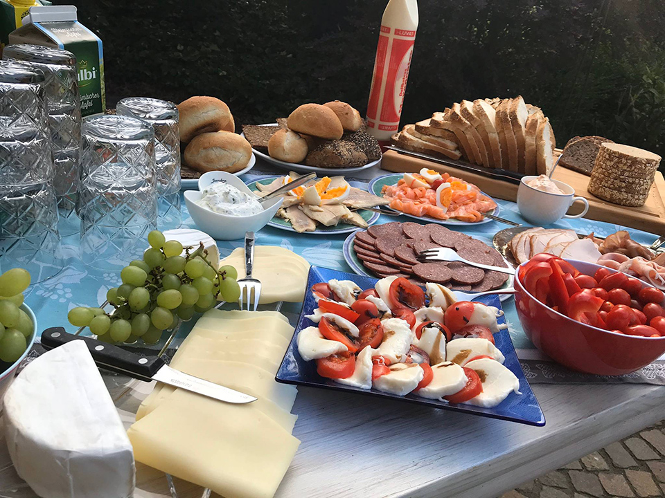 食事は外のテラスで。とくに決まったスケジュールがある訳ではなく、ただずっとおしゃべりしたり、庭でお昼寝したり、近くの森に散歩に行ったり…とにかくのんびり、まったり。