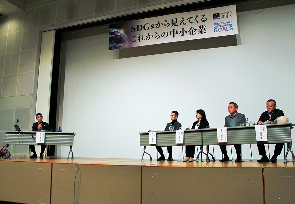 2020 年2月4日、墨田区産業振興課主催の講演会「SDGsから見えてくるこれからの中小企業」が開催されました。墨田区はものづくりを担う町工場や中小企業が多いエリア。区内で活躍する経営者4人が登壇し、これからの中小企業の経営とSDGs(エスディージーズ、持続可能な開発目標)の取り組みについてディスカッションしました。内容の一部をレポートします。