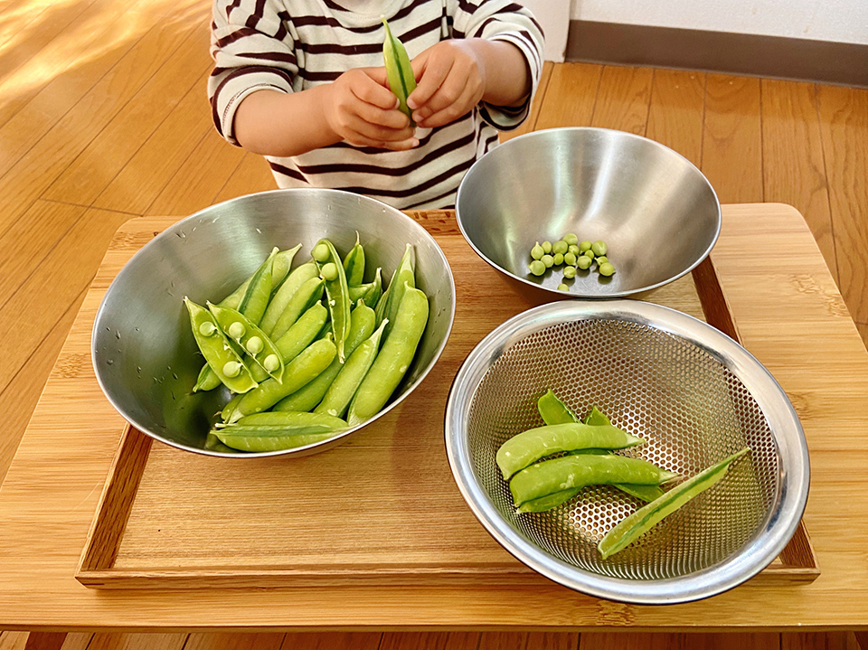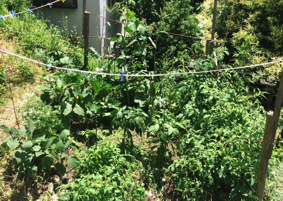 ごはんを作るときで出た野菜くずをコンポストで堆肥にして畑の土に混ぜて使い、
