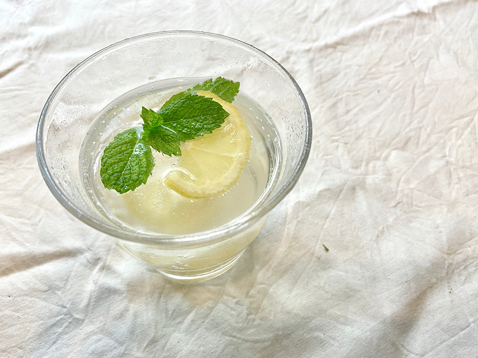 いつものお水にフレッシュなミントと輪切りのレモンを入れれば、まるでカフェにきたような楽しい気分に。消化を助けてくれるので、お肉料理と合わせても◎