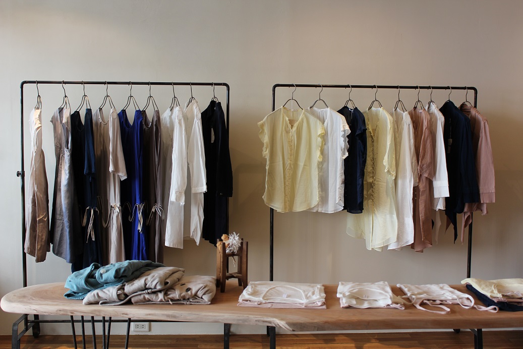 これはナデルの基幹となる想いだ。「原綿、糸、織り、染め、縫製、パターン……etc そのすべてをもっともっと究めていく。」「私たちが作り出したモノ、提案するコトを、私たち自身でお伝えしていく。」「そこに生まれる出会いが次々とつながっていき、やがて大きくあたたかな和になることを信じて……。」そんな大きな想いを胸に本日、NADELLが念願の路面店を京都・河原町にオープンした。