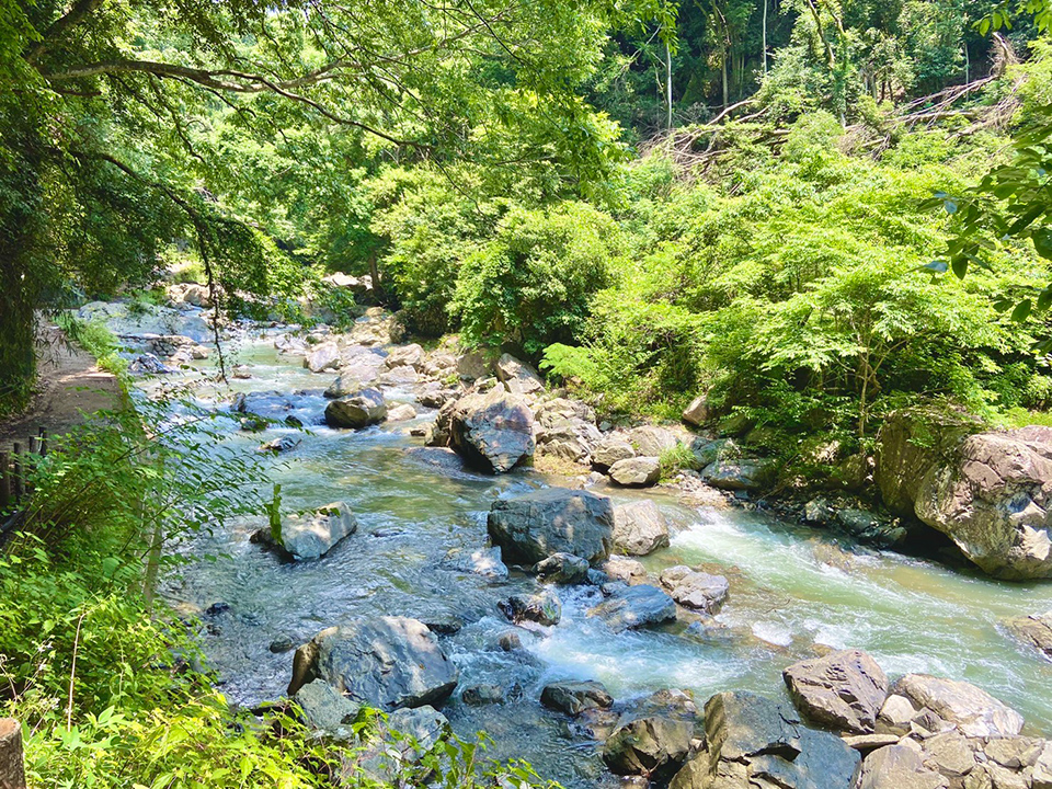 公園の浅い水路とは違う、森の中の清流に夢中になって遊んでいる娘と夫の姿を見守りつつ、