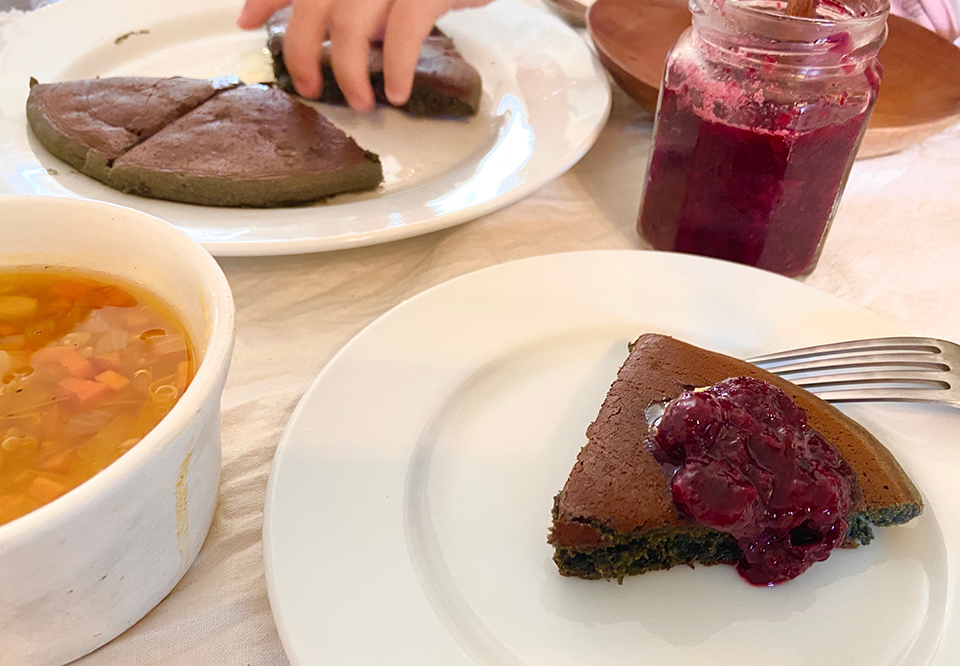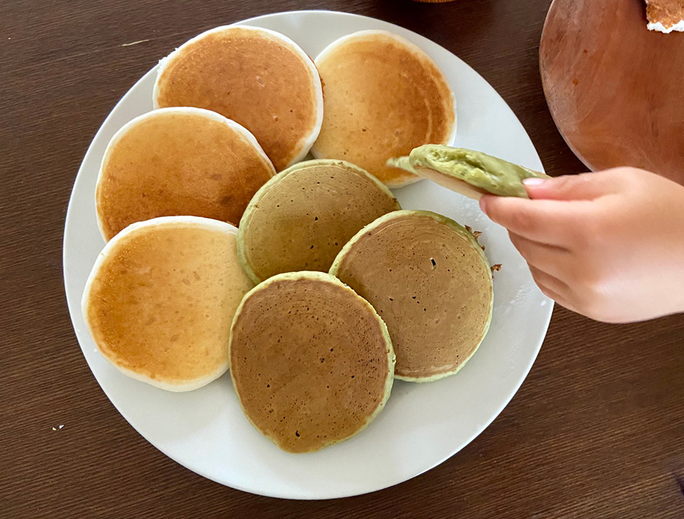 休日の朝ごはんは、米粉のパンケーキかシンプルなトーストがわが家の定番。
