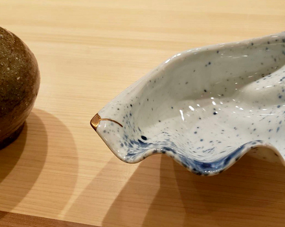 繕うことを通じて、それ自体の芸術的・美的価値を加える金継ぎ。