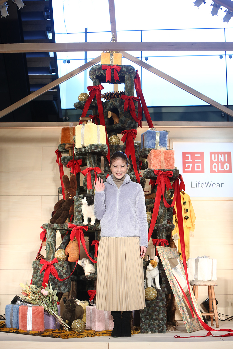 ユニクロは17日午前、原宿店で「フリースクリスマスツリー」のお披露目会を開催しました。(記者:エシカちゃん)