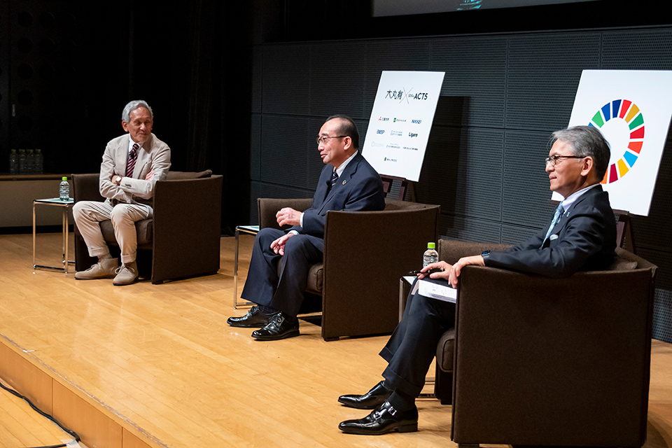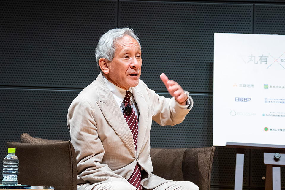 11月16日、約7カ月間にわたって実行してきたSDGsに関連する各アクションを振り返る「大丸有SDGs ACT5 Closing ACT」が開催されました。その中で、米倉誠一郎氏(一橋大学名誉教授/CR-SIS学長)がモデレーターを担当したセッション3「講評」について、①根本かおる氏・国連広報センター所長 ②垣内俊哉氏・ミライロ代表取締役社長 ③吉田淳一氏・三菱地所執行役社長×奥和登氏・農林中央金庫代表理事理事長、と3回に分けてご紹介します。