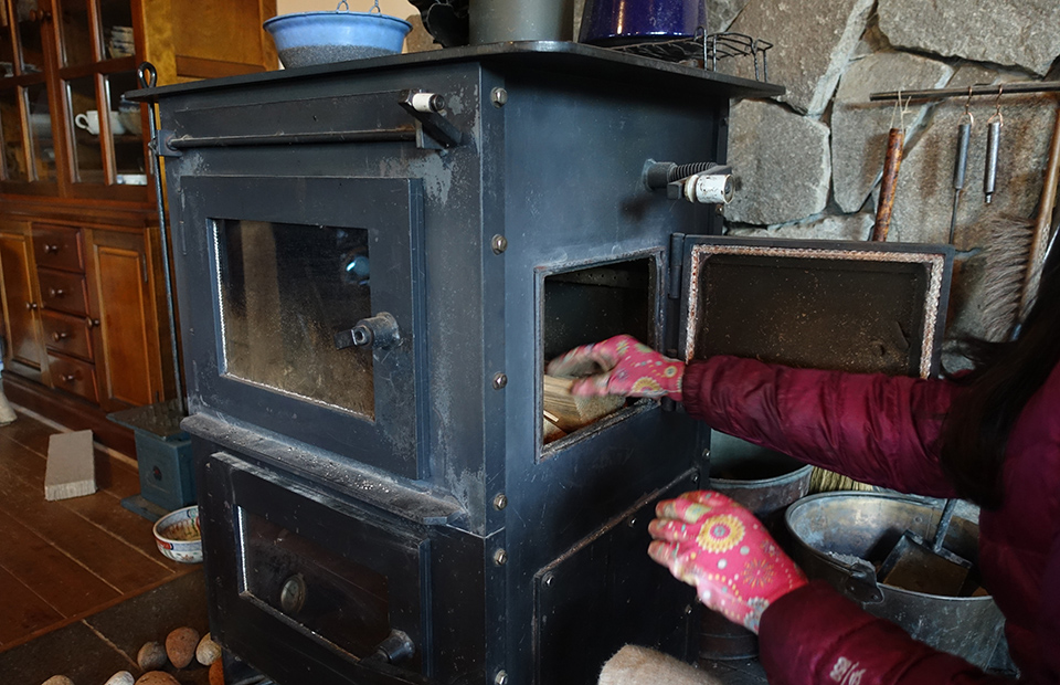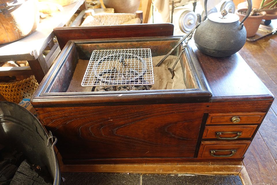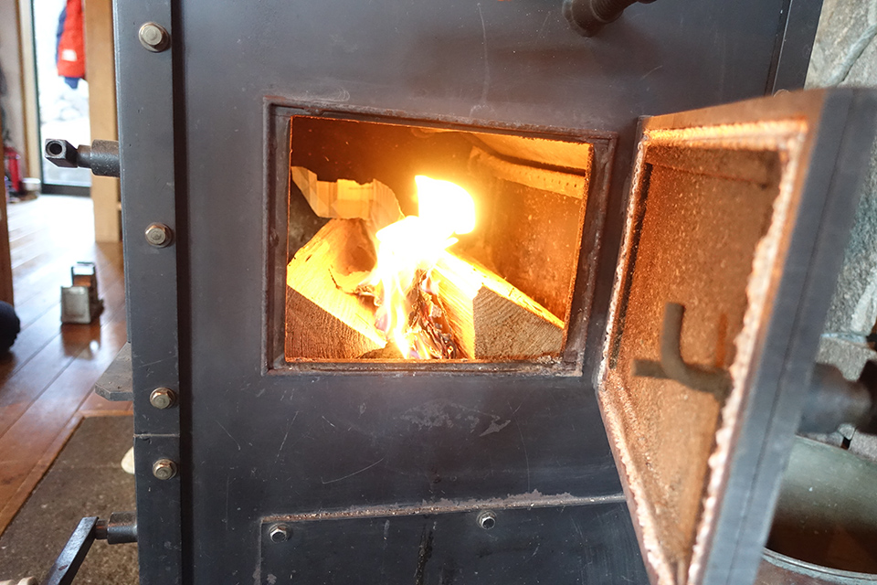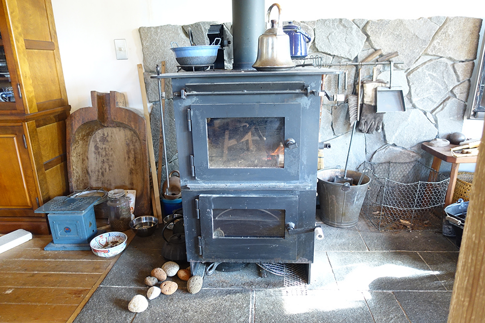1970年頃までは、日本の暖房や給湯はほとんど地元の森林の樹木で賄われていたと言います。ここ四井家でも、薪ストーブをはじめ、かまどや長火鉢など、毎日の生活の中で薪や灰が大活躍しています。