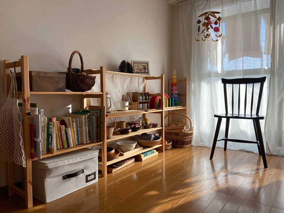 我が家では、腰より高い家具はリビングや子どものスペースには置かず、背の高い本棚は長時間過ごすことのない洋室へ。寝室には、布団以外何も置かないようにしています。