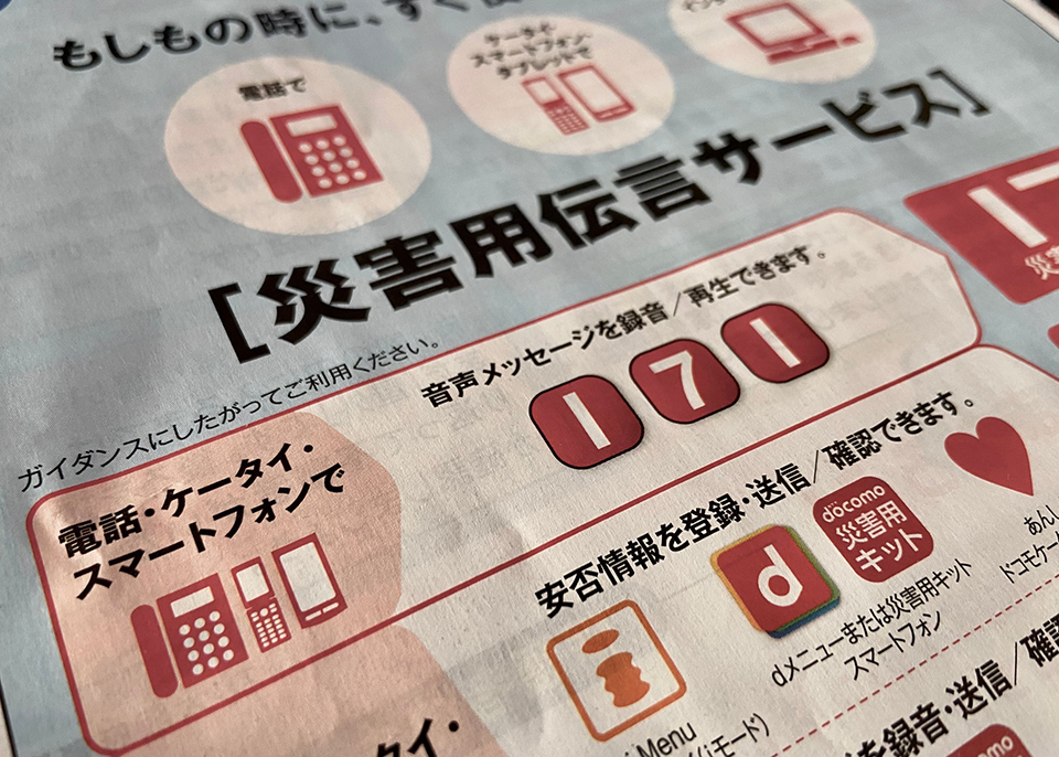 NTT災害用伝言ダイヤル(171)や、アプリなどの安否確認サービスは、事前にお試しで使ってみておくと、もしものときもスムーズに利用できます。