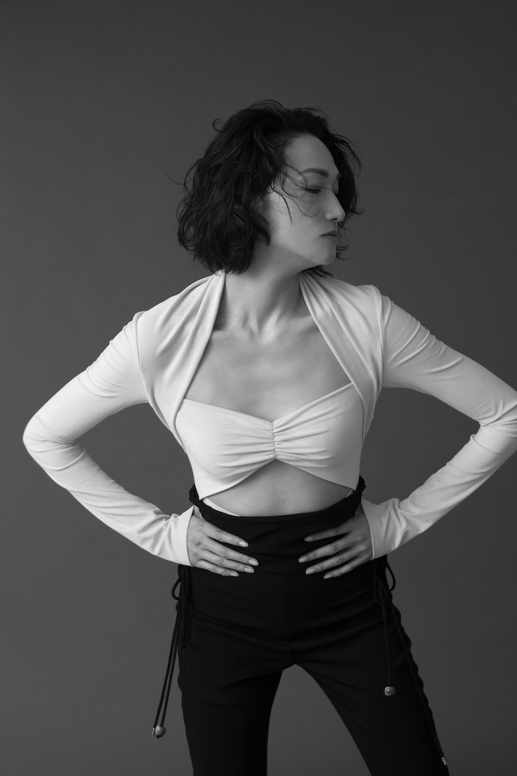 撮影:平間至 トップス¥62,400、パンツ¥62,400(税別)/ ナヌーシュカ( HiRAO INC [ヒラオインク])