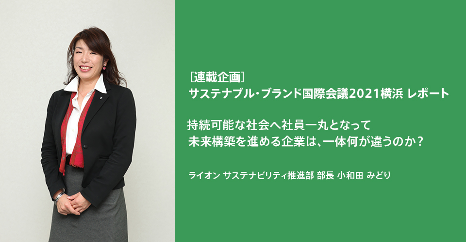 ethicaがメディアパートナーとして参加した「サステナブル・ブランド 国際会議2021横浜(SB 2021 YOKOHAMA)」では多くのセミナー、ディスカッション、ワークショップが繰り広げられ、さまざまな貴重な提言や発表が紹介されました。今回は、「持続可能な社会へ社員一丸となって未来構築を進める企業は、一体何が違うのか?」と問いかけたセッションで発表された、ライオン株式会社の小和田みどり氏のプレゼンテーションをご紹介します。(記者:エシカちゃん)