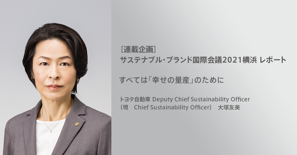 ethicaがメディアパートナーとして参加した「サステナブル・ブランド 国際会議2021横浜(SB 2021 YOKOHAMA)」では多くのセミナー、ディスカッション、ワークショップが繰り広げられ、さまざまな貴重な提言や発表が紹介されました。今回は、SDGsを推進しモビリティーカンパニーへの変革を目指す、トヨタ自動車のDeputy Chief Sustainability Officer(現 Chief Sustainability Officer) 大塚友美氏のプレゼンテーションをレポートします。(記者:エシカちゃん)