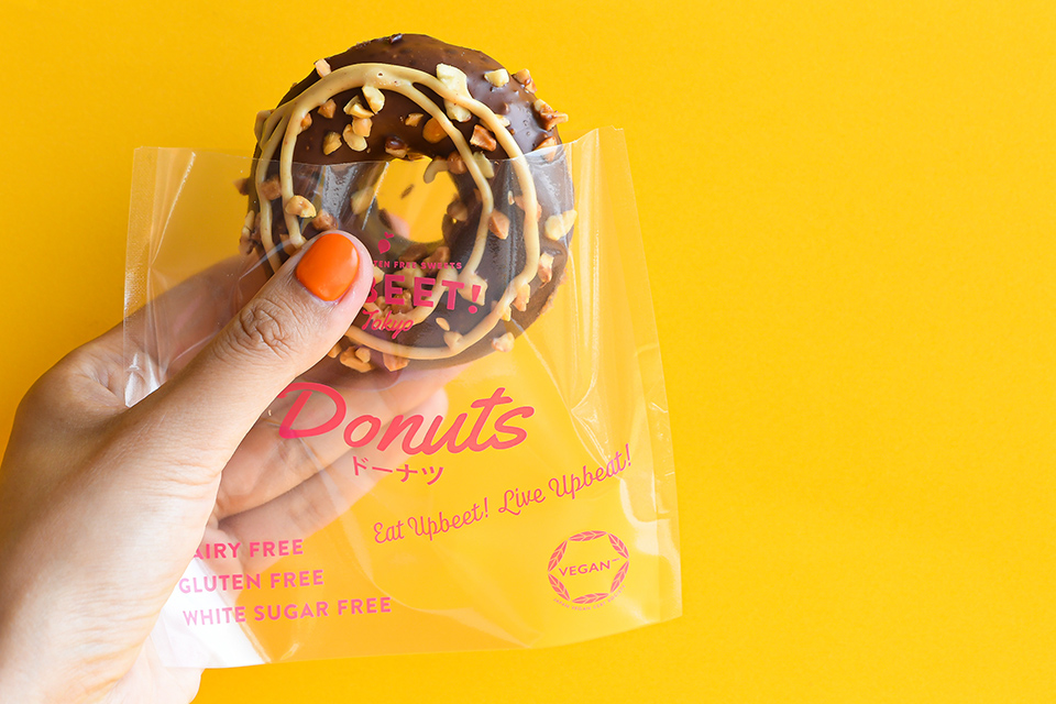 アメリカンピーナッツ協会とヴィーガン&グルテンフリースイーツ専門店とのコラボによる「UPBEET!ドーナツ ピーナッツバター&ミルクチョコレート」が期間限定で新発売!体にも環境にもいい、その上 SDGsに貢献できちゃう話題のドーナッツを取材しました。