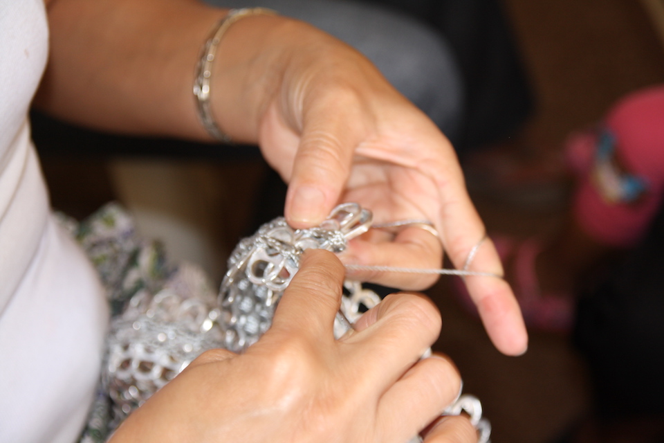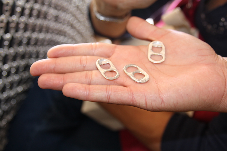 「かわいい!」初めて見た瞬間から、おしゃれ心を鷲掴みにする煌めきルックスのバッグやアクセサリー。「何でできているの?」と手に取ってみると、アルミ缶のプルタブを一つひとつ編み込んで作られていることに驚きます。実はこれ、リサイクルされたプルタブを素材に、ブラジルで作られたフェアトレードの商品なのです。