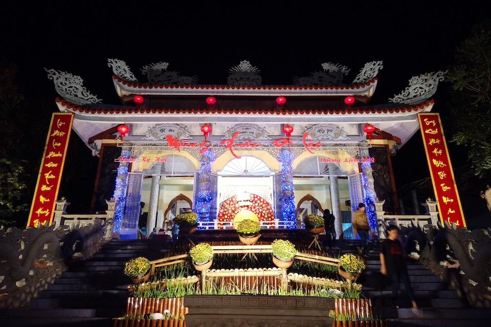 そして迎えた旧正月当日。朝になると、子供たちはお年玉をもらいます(恥ずかしながら、二十を過ぎた私も断り切れずお年玉をたくさん受け取りました)。食事時には、豪華な料理が食卓に並び、正月太りを覚悟。そして次には、家族みながアオザイを着て登場です。家の前で記念写真を撮るためとのことで、私もカメラマンとして働いたり、あるいは皆と一緒に写ったりしました。
