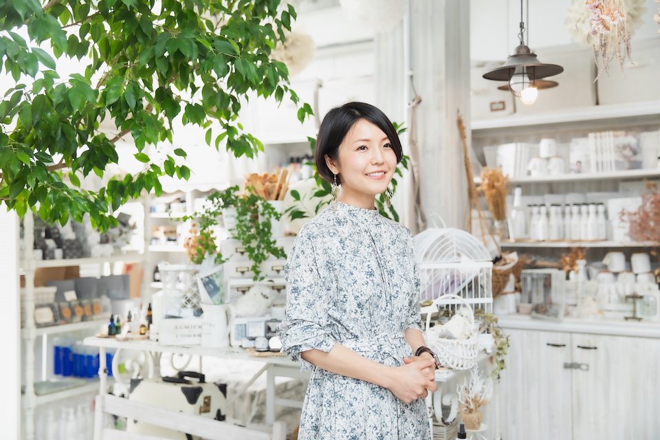 坂田さんは現役のセラピストでありながら「女性の新しい働き方」を創出するためのオーガニックビューティセラピストを育成するスクールを全国で展開。さらに自社オリジナルのオーガニック化粧品の企画・開発も行い、ご自身の子育てと両立しながら、女性の素肌と心を癒すために起業家として精力的に活動されています。