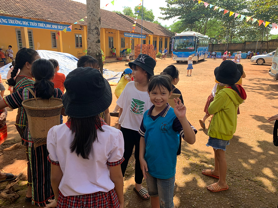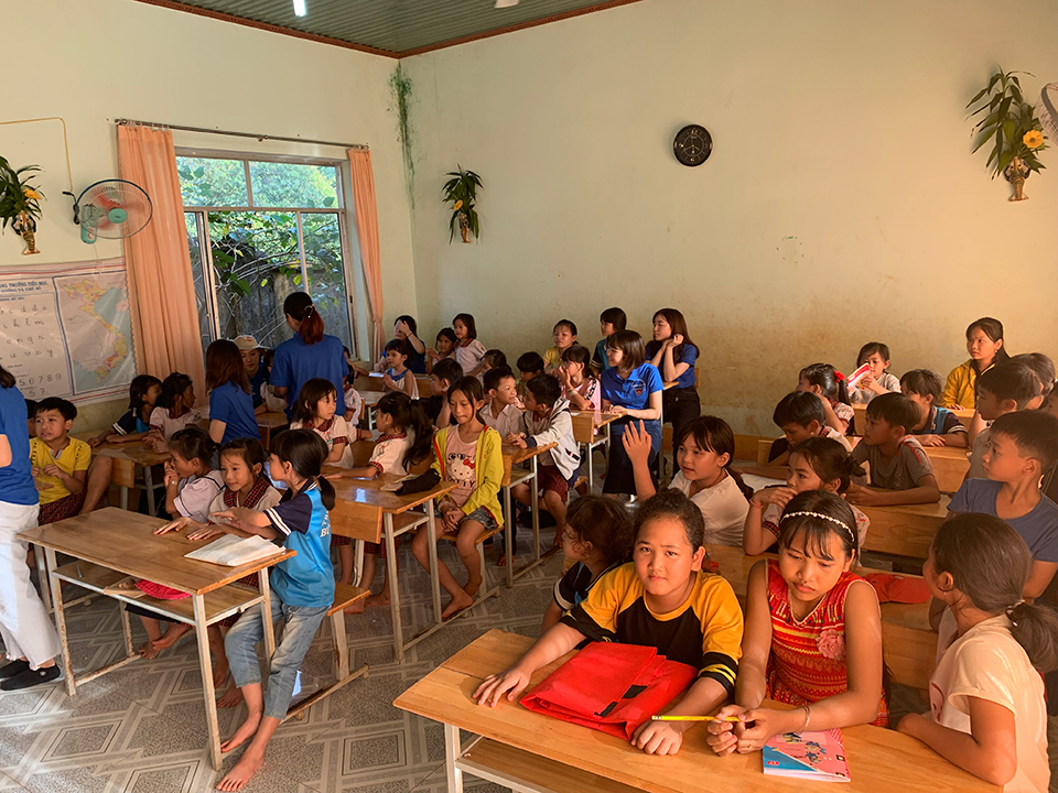 そうした問題意識から、私は一度、プログラムの一環でベトナムの田舎にある小学校で、ゴミの分別に関する授業をしたことがあります。そこは、首都ホーチミン市から車で5~6時間ほどのところにある、カンボジアと国境を接する街で、小学校は全校生徒200人弱の学校でした。ベトナムは若年人口が多いので、田舎の方に行っても子供たちがたくさんいます。
