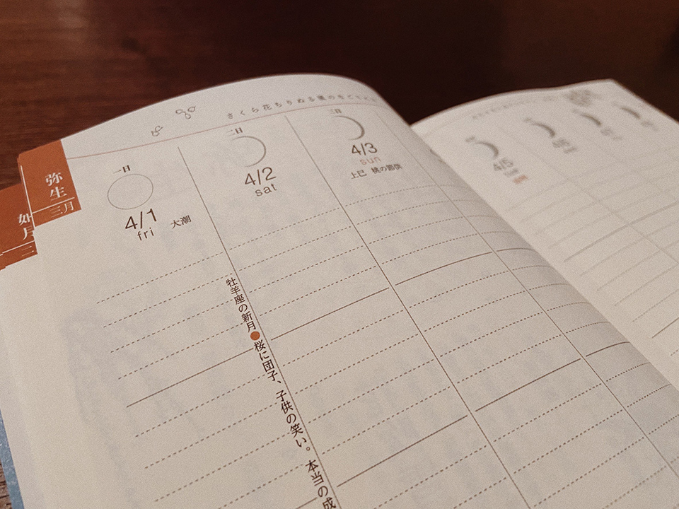 月の満ち欠けを意識するようになってから、まず取り入れたのは旧暦カレンダーです。