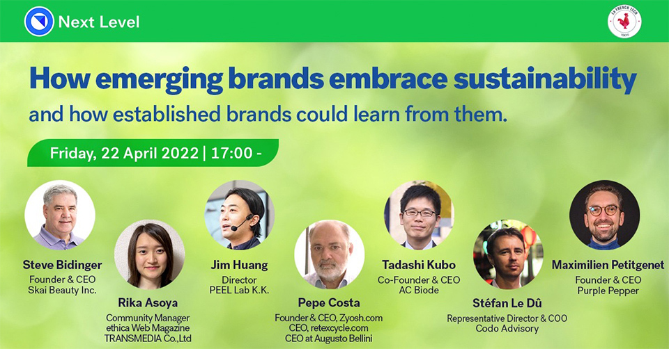 私たちethica編集部も、アースデイに合わせて開催されたオンラインイベント、『NEXT LEVEL JAPAN Earth Day 2022 | How emerging brands embrace sustainability』に参加し、持続可能な社会づくりに取り組む他の6つのブランドと共にそれぞれのブランドの取り組みや価値について共有しました。