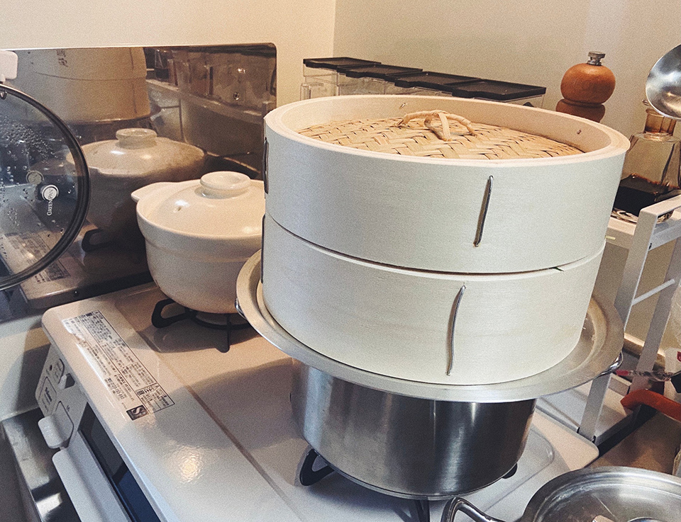 いつもと同じ素材でも、せいろで蒸すだけで魚やお肉はふわふわしっとり、野菜は旨味がぎゅっと凝縮され、蒸しパンはきれいにぱっくりと割れて、なんだか料理が上手くなったかのよう。色白で美しい木肌のせいろが目に入るだけでも嬉しく、台所に立つたびにホクホクと気分が上がる今日このごろです。