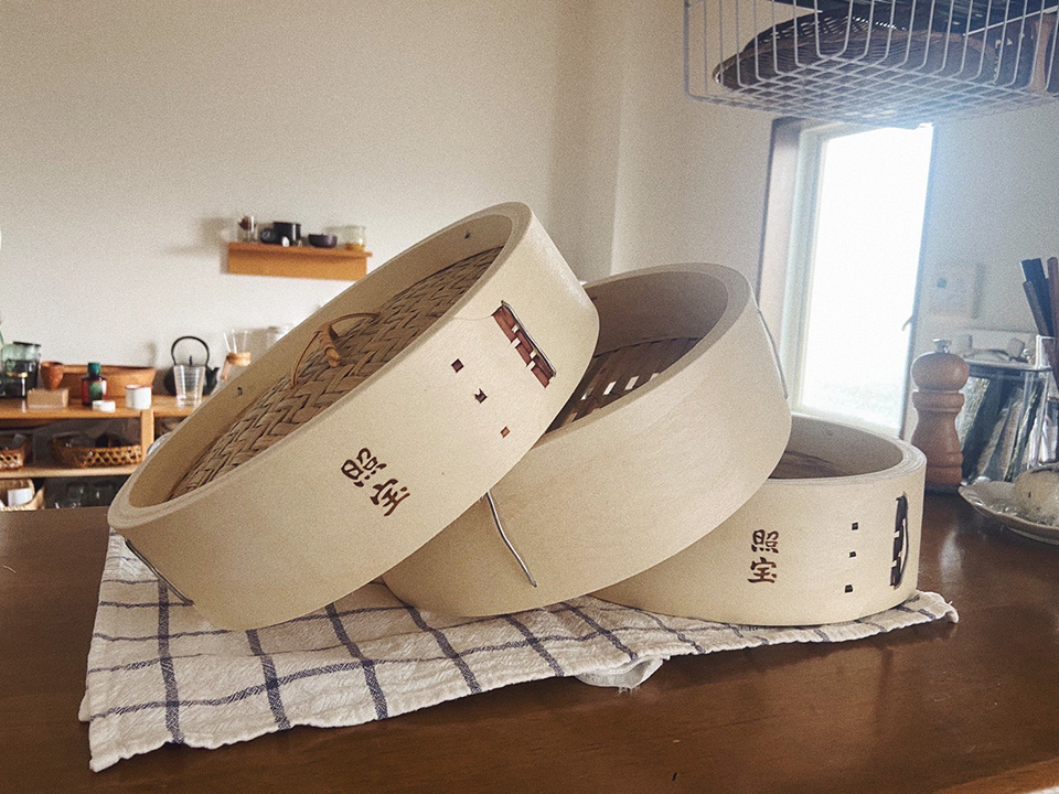 今、使っているのは、照宝の白木の二段せいろです。白木にしたのは、杉は香りが強すぎるなぁと感じたのと、より長く使えるように、強度があるものをと思ったことから。