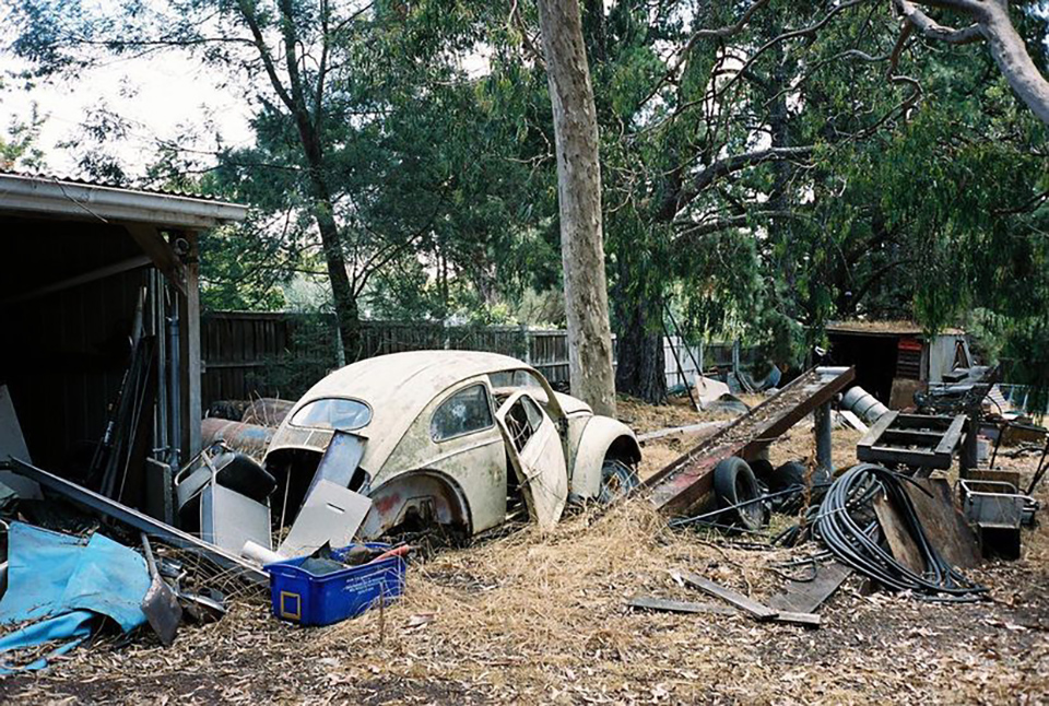祖父母の家の裏庭。祖父は昔カーレーサーだった。