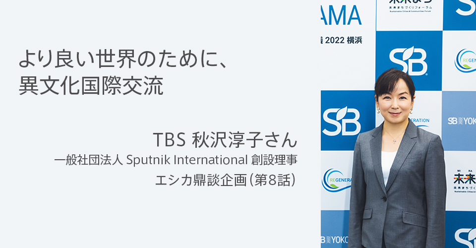 パシフィコ横浜で開催された「サステナブル・ブランド国際会議2022横浜」(SB 2022 YOKOHAMA)に基調講演の1人として参加されたTBSの元アナウンサーで現在は総務局CSR推進部で部長を務める秋沢淳子さん。