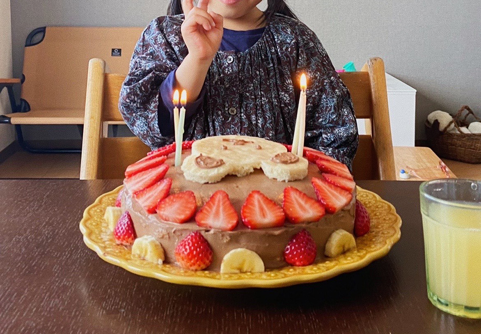 イベント大好きな娘は、クリスマスが終わったときから、次のお誕生日を、それはそれは楽しみにしていて「なぁ、あとなんかいねたら、おたんじょうび!?」「どんなケーキかなー。くまさんのがいいなぁ」と首を長くしてこの日を待っていたのでした。