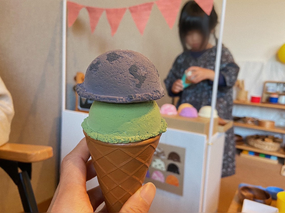 その結果、樹脂粘土と絵の具で本物そっくりに作れるというアイスクリームの作り方の情報を得て、手作りのアイスクリームやさんをプレゼントすることにしたのでした。