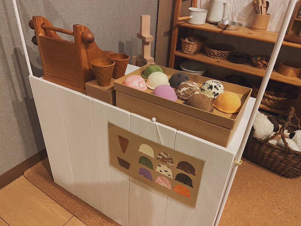 さっそくアイスクリーム屋さんになりきって祖父母にふるまい、わが家にお客さんが来るたびに「どれがいいですか〜!」と押し売り(!?)しています。
